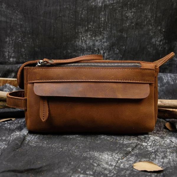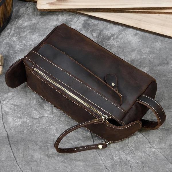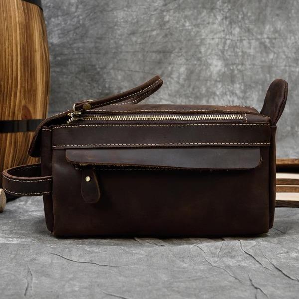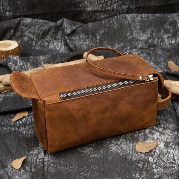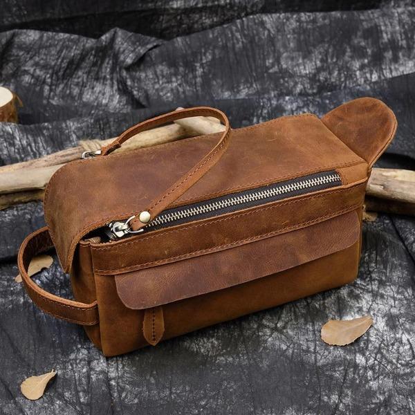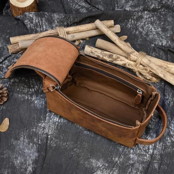 La robustesse de la Trousse de Toilette Cuir Vintage Vintime™ en fait un allié de choix pour tous vos déplacements. Sa conception robuste supporte parfaitement le voyage, offrant une protection optimale à vos produits de soin journaliers. Ne laissez plus l’étroitesse des bagages vous limiter.