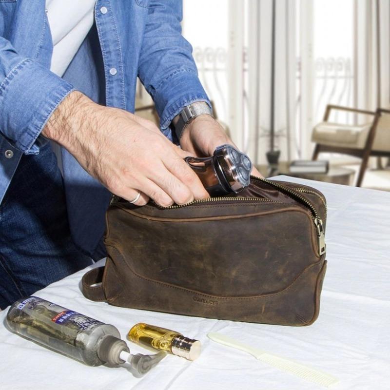 Découvrez la Trousse de Toilette Homme en Cuir de Luxe Sogaïa™, l’accessoire incontournable pour vos voyages.