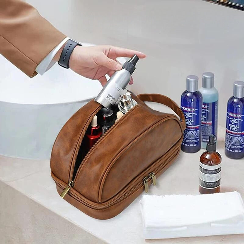 Trousse de Toilette Homme en Cuir Vintage