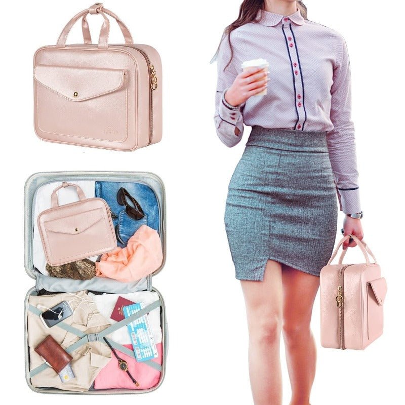 Découvrez la Trousse de Toilette Pliable pour Femme: élégance, confort et praticité pour tous vos voyages.