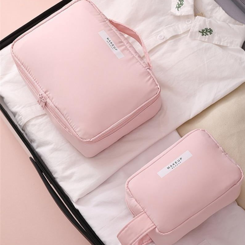 La Trousse de Toilette Rectangulaire pour Femme Makeup Beauty™, grâce à sa souplesse, s’adapte aisément à vos bagages. Que vous ayez une valise bien remplie ou une petite sacoche, vous trouverez toujours un endroit pour elle. Sa légèreté est un atout supplémentaire, facilitant le transport où que vous alliez.