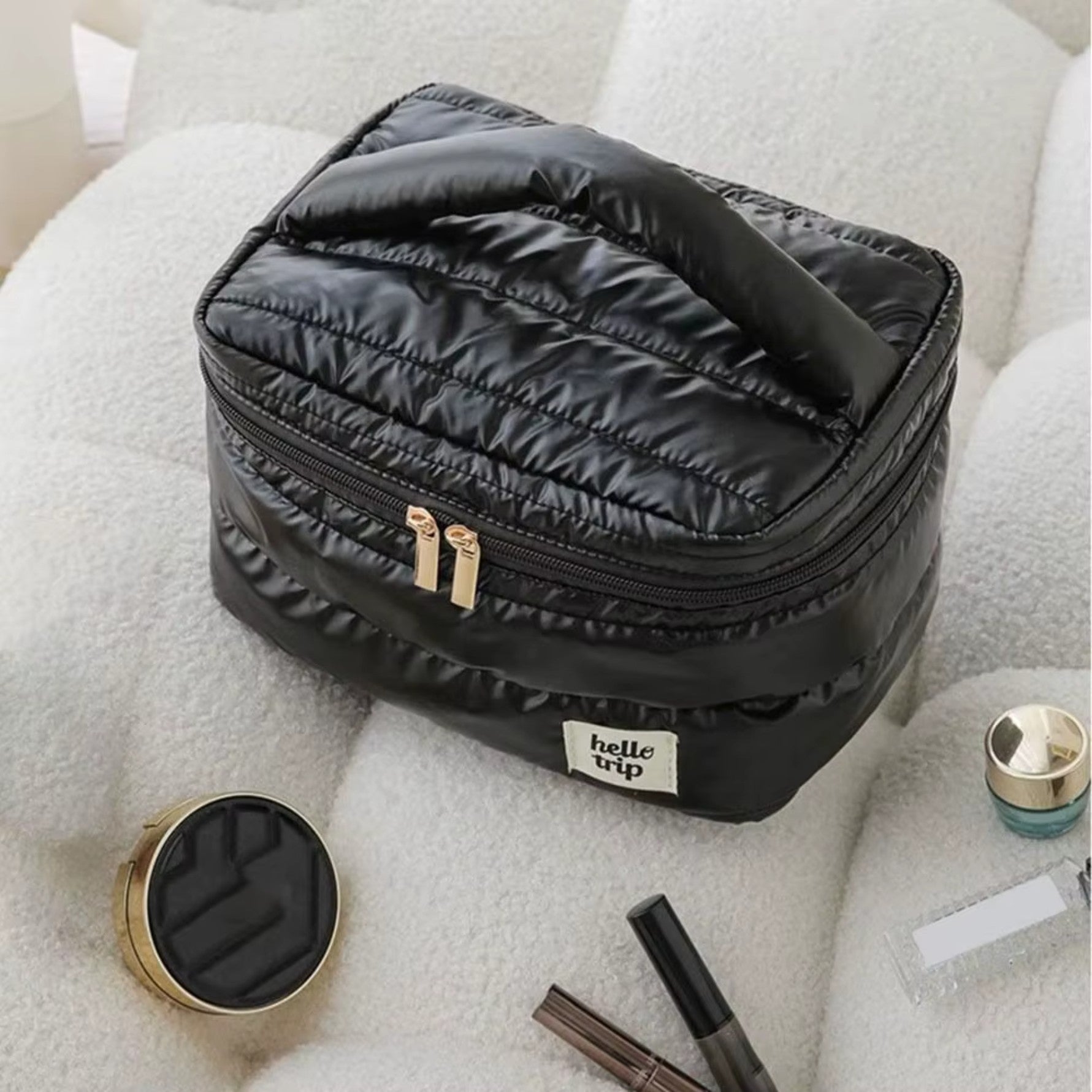Avec le Vanity matelassé – Puffer, le style se marie à la fonctionnalité. Son aspect matelassé protège vos accessoires avec une touche tendance, tandis que sa légèreté vous assure un transport facile et agréable. C’est le choix idéal pour ceux qui ne veulent pas sacrifier le style pour le confort.
