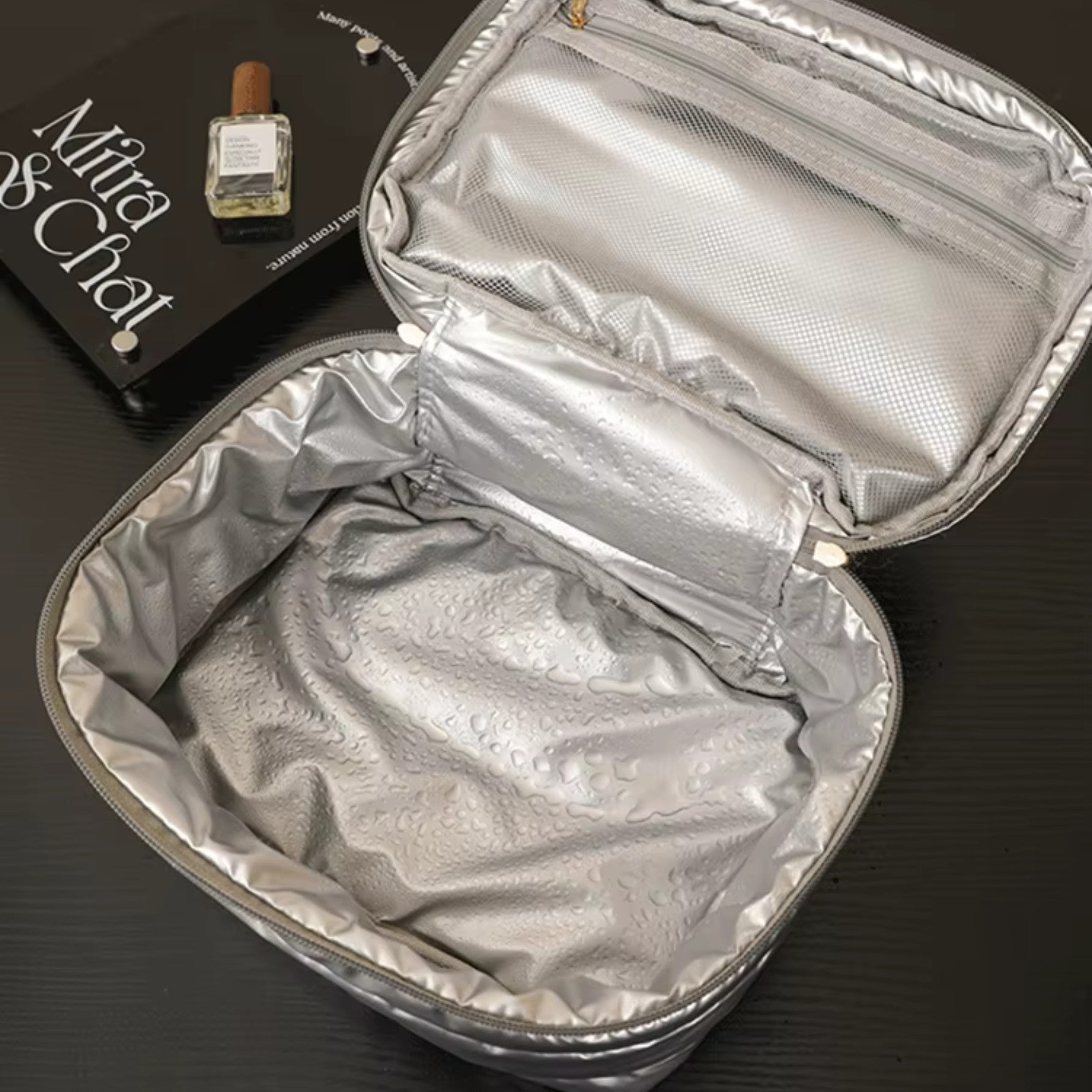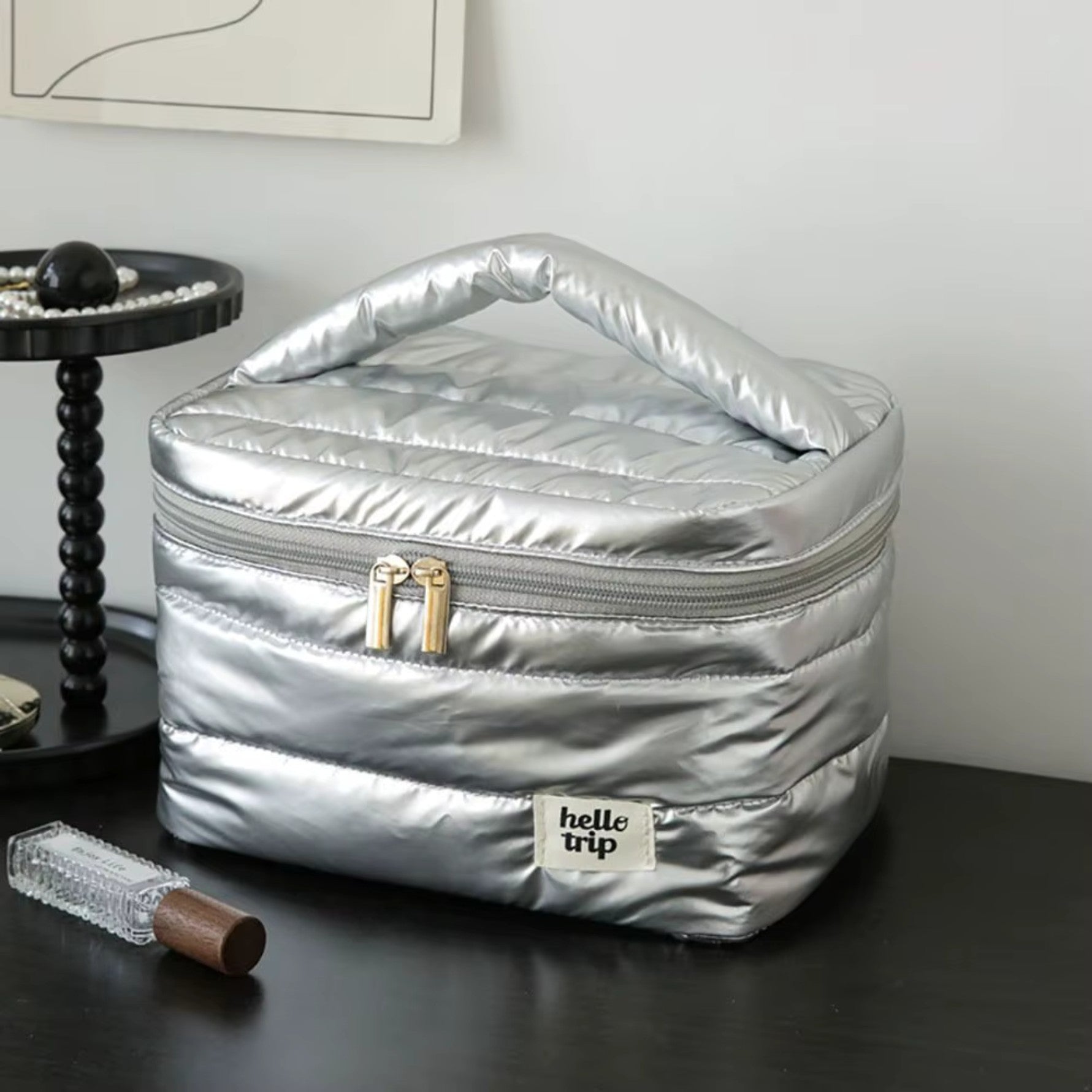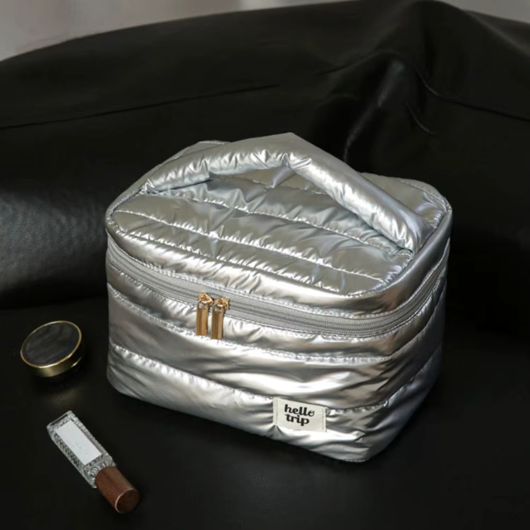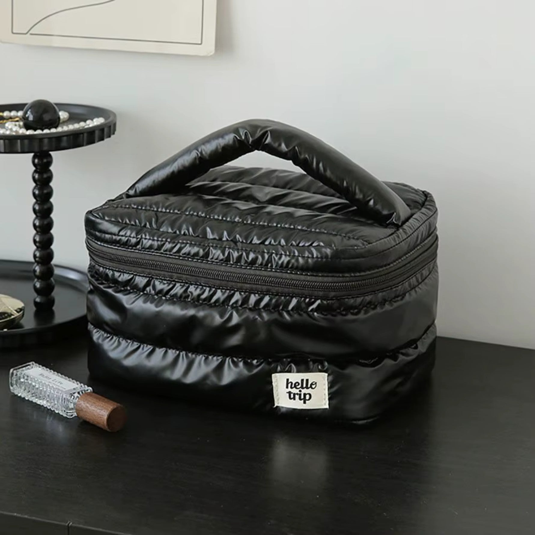 Le Vanity matelassé – Puffer incarne l’élégance et la commodité pour vos déplacements. Sa conception unique vous permet d’organiser aisément vos produits essentiels de toilette. Grâce à sa structure ingénieuse et adaptative, il s’intègre facilement dans vos bagages tout en protégeant vos effets personnels de manière stylée.