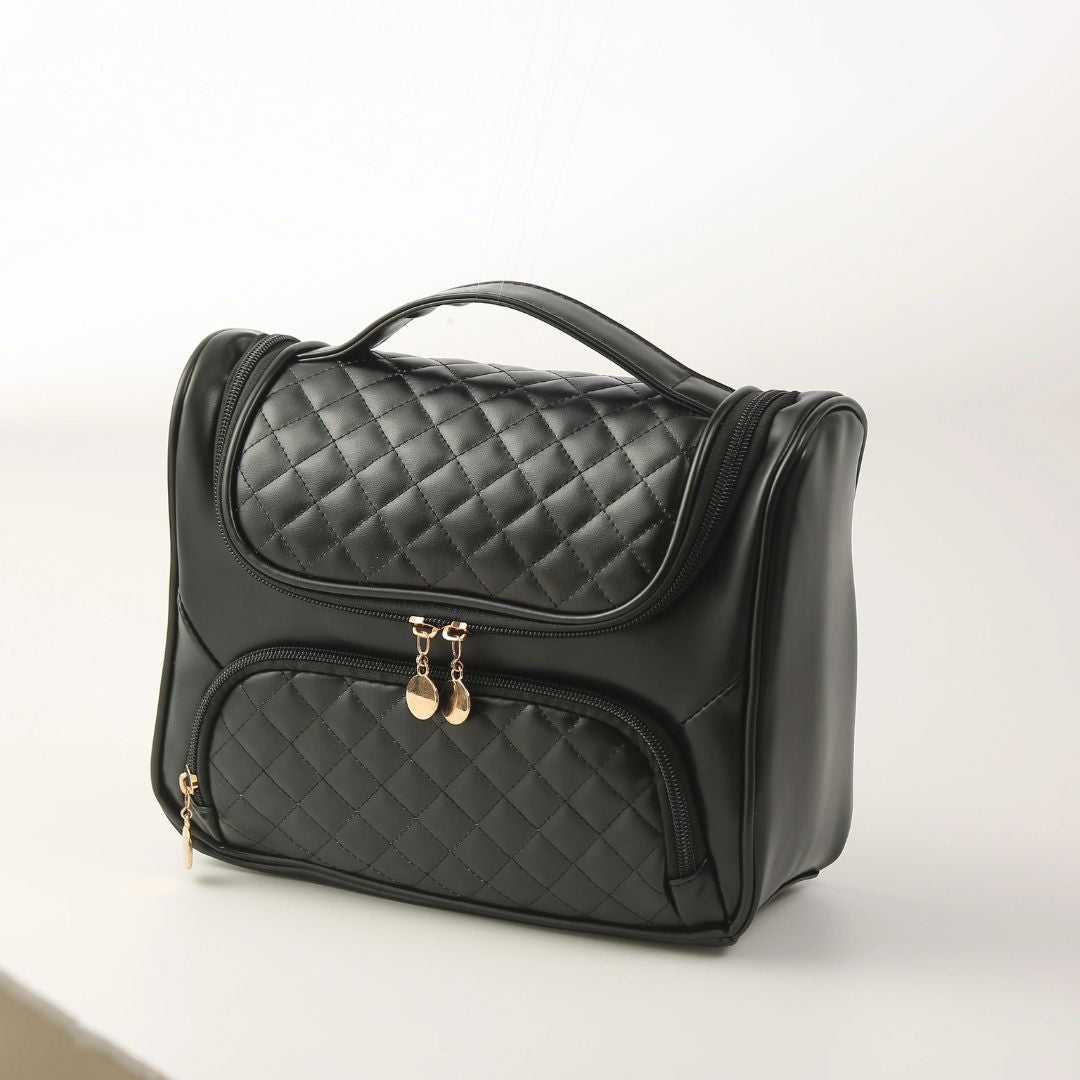 Découvrez le Vanity Suspendu, un accessoire indispensable conçu pour ceux qui voyagent avec style et praticité. Sa conception haute gamme permet de transporter vos essentiels de toilette tout en optimisant l’espace dans votre bagage. Idéal pour les aventuriers modernes, ce vanity combine finesse et utilité en un seul objet.