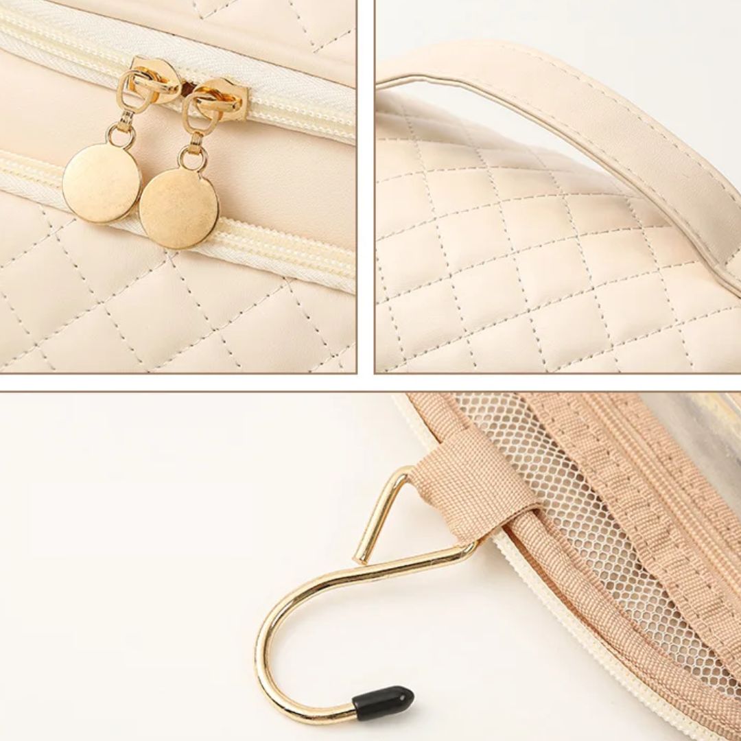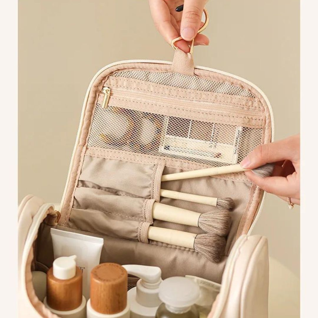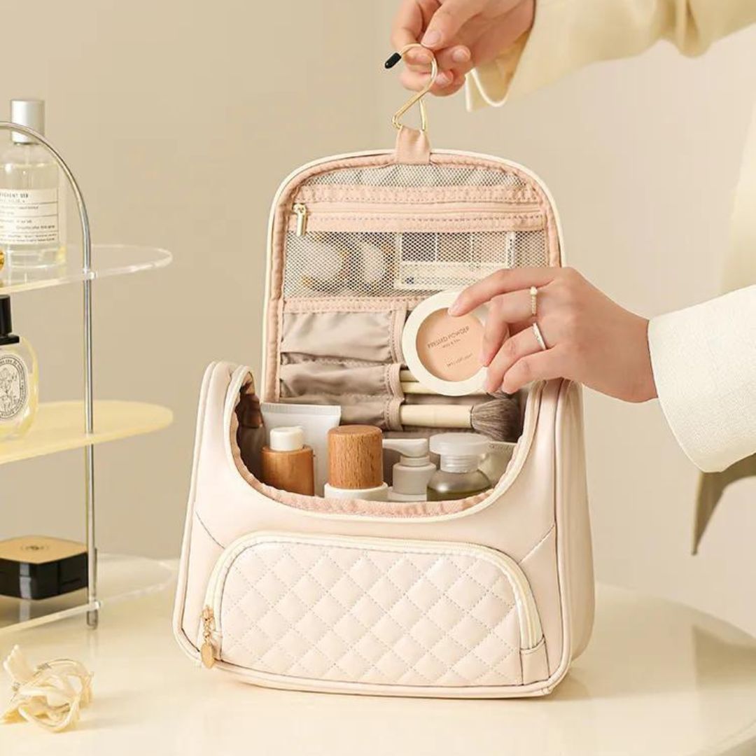 Son format léger et compact transforme votre routine de voyage en une expérience agréable et sans stress. Le Vanity Suspendu vous accompagne dans tous vos déplacements, assurant un rangement optimal et une organisation parfaite de vos articles de toilette personnels.